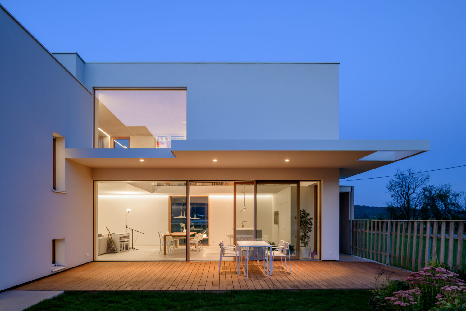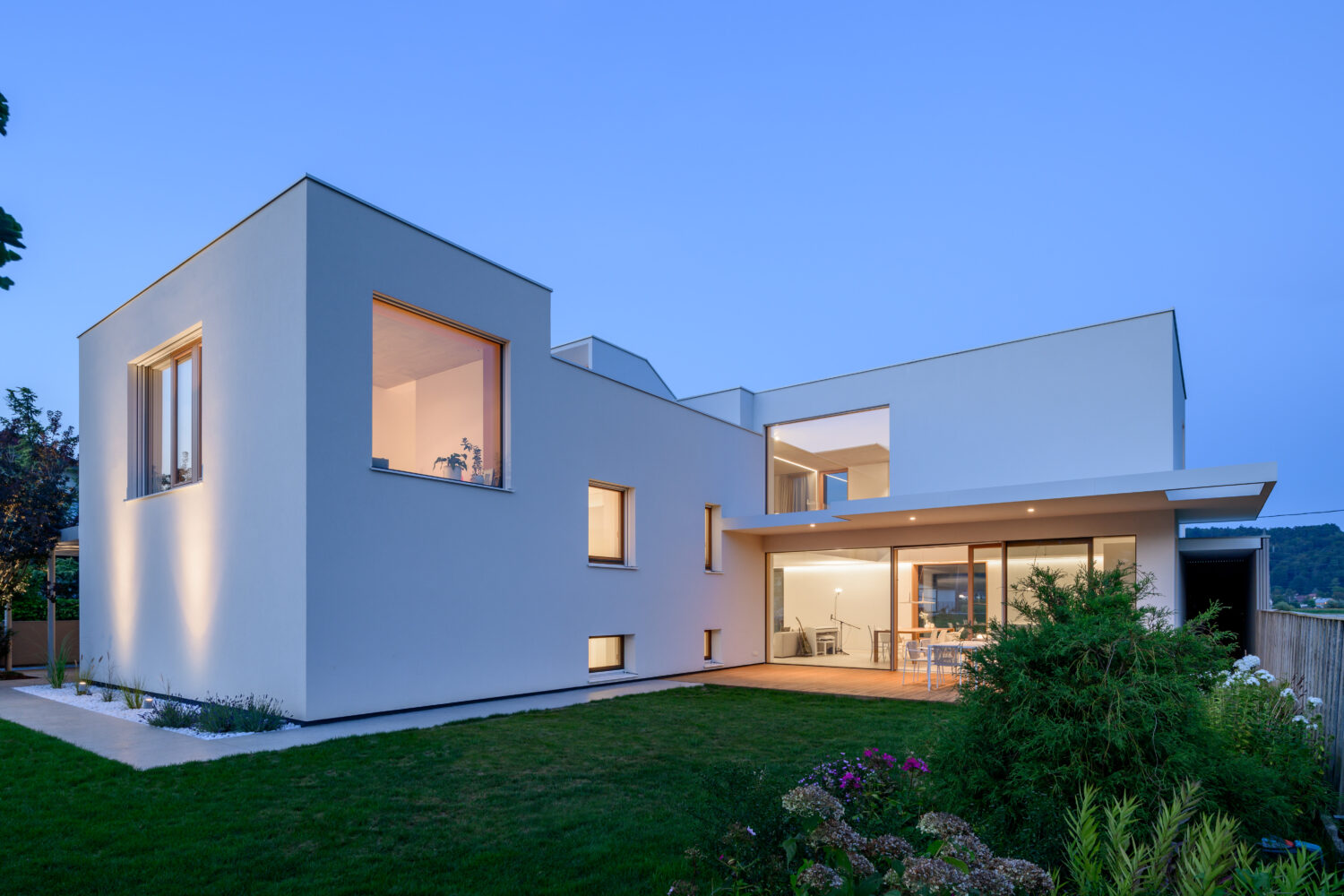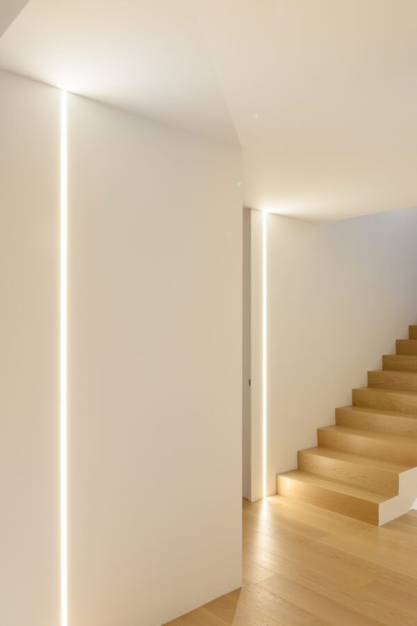 Hiša odraža zavezanost družinskemu življenju. To je bila tudi vodilna misel pri oblikovanju osvetlitve. Z uporabo diskretnih svetlobnih linij ustvarja vrsto udobnih ambientov, ki vzbujajo občutek topline doma, hkrati pa podpirajo izčiščeno in lahkotno vizualno podobo interierja.